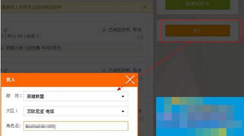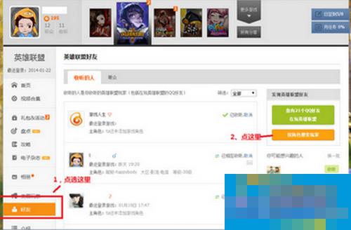 点击右上角的找朋友,弹出之后,选择英雄联盟,如图