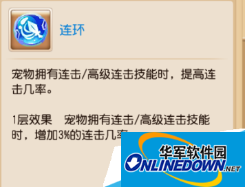 一层效果,宠物拥有连击/高级连击技能时,提高3%的连击几率。总输出提高4.8%,会被反震克制。