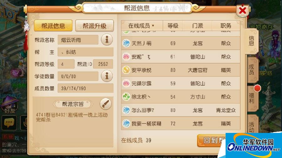 所以如果条件允许,作为帮主应该固定好自己的上线时间,并且找到在你下线的时候也能帮忙管理帮派的朋友,让帮派24小时都能有高层压阵,这样就能让你的帮派时刻都在你的控制之下。