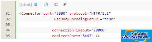 打开conf目录下server.xml文件,找到对8080端口进行服务的Connector组件的设置部分,给这个组件添加一个属性:URIEncoding="GBK"。修改后的Connector设置为: