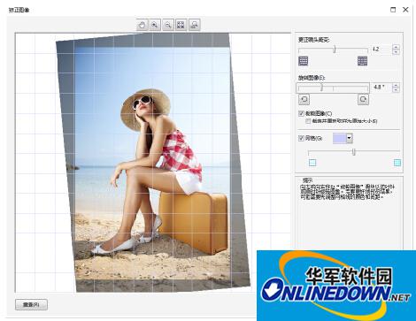 预览窗口中将启用显示网格以帮助您矫正图像。通过控制网格的单元格大小可以进行更加精确的调整。要增强网格相对于图像颜色的对比度,可以更改网格的颜色。如果想预览不带网格线的最终结果,也可以隐藏该网格。另外,您可以在预览窗口中缩放和平移图像以评估结果。
