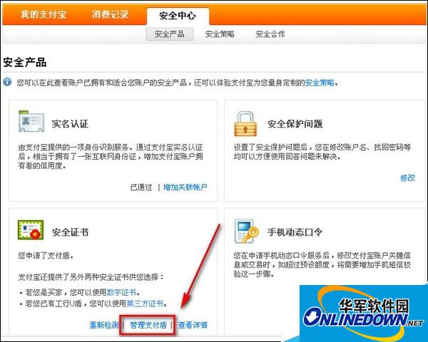 或者也可以登录支付宝账户—安全中心—支付盾—点击【管理支付盾】;