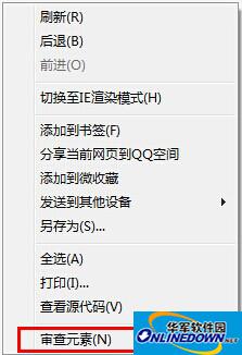在使用审查元素功能之前我们首先要先开启高速渲染组件即切换至高速渲染模式(切换方式请看:QQ浏览器的高速渲染组件在哪儿?),然后在网页的空白处点击鼠标的右键,这样我们就可以在右键后的最后一个选项里看到审查元素了。