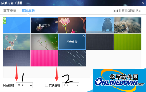 3:点我的皮肤如下所示,在这里你可以选择你喜欢的背景颜色进行设置,如下箭头所示可以设置各种透明或是进行调色