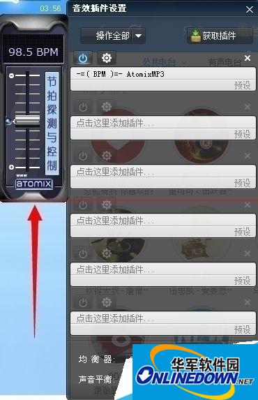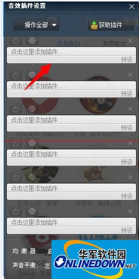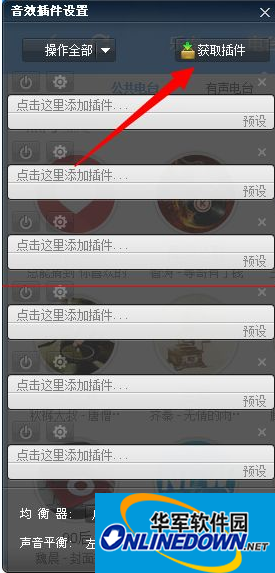 3、进入“音效设置界面”,点击右上方的【获取插件】