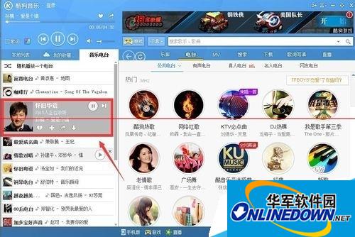 2、我们随意选择一个电台收听,正在播放的电台变成了下图框选的样子。