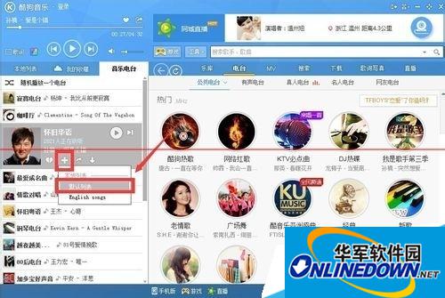 1、首先我们打开酷狗音乐,来到“音乐电台”面板。