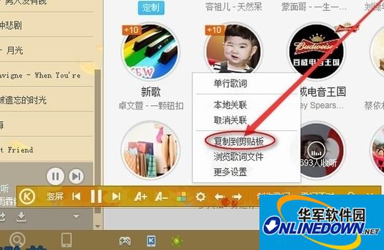 4、我们点击歌词设置,选择复制到粘贴板