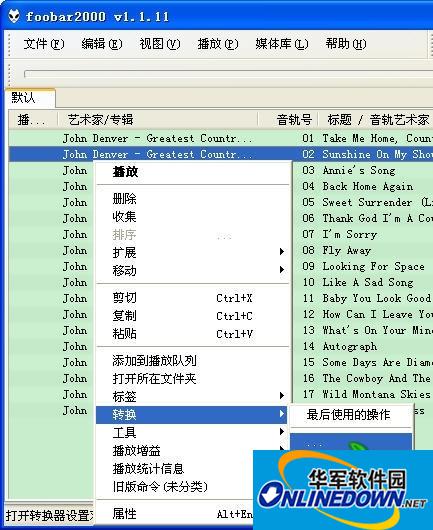 加载成功后。随便点击一个音频文件。右击“转换”输出格式随意(但Foobar2000components文件夹中必须有所用到的插件)
