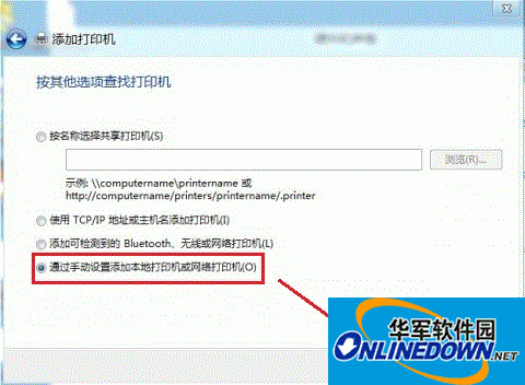 5、选择“通过手动设置添加本地打印机或网络打印机”,点击“下一步”按钮,参见下图