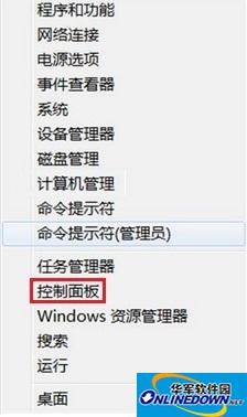 1、系统下同时按住键盘上 “Windows” 和 “X” 键打开系统菜单 ,选择“控制面板”,参见下图