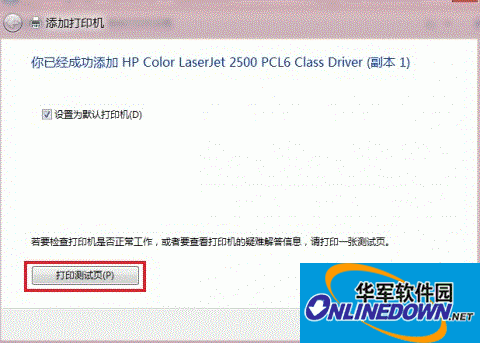 11、点击“打印测试页”按钮,打印测试安装打印驱动是否正常,点击“完成”按钮。参见下图