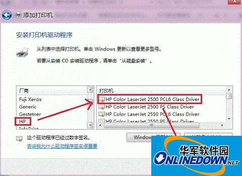 7、选择打印机“厂商”和“打印机型号”,点击“下一步”按钮,参见下图