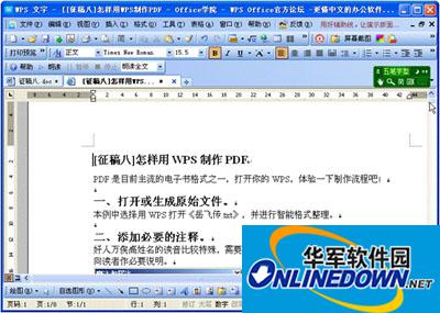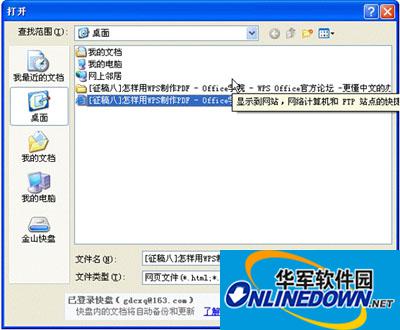 执行“文件”→“打开”,文件类型选择“网页文件”或“所有文件”,以打开刚才下载得到的《[征稿八]怎样用WPS制作PDF》html文件。