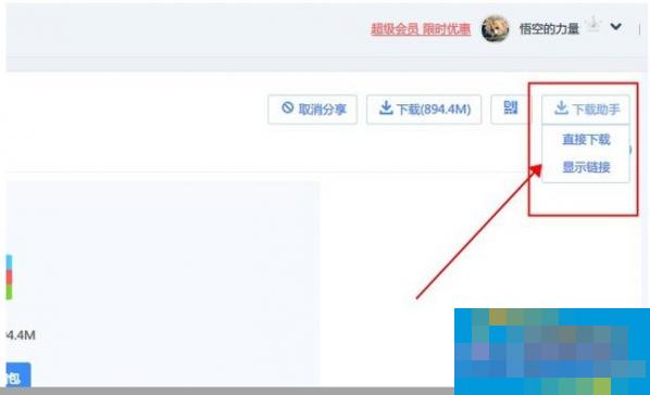 安装完脚本后在百度网盘下载页面,会看到右边多了一个下载助手的按钮,点开后有直接下载和显示链接,你想用浏览器直接下载还是用迅雷或者qq旋风下载就随你便了。