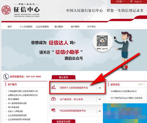 2、接下来点击互联网个人信用信息服务平台。