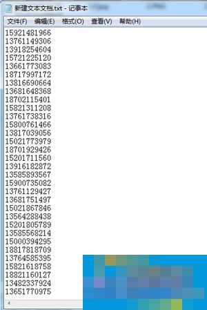 二)把自己需要导入手机的号码用一个TXT文本一行一个号码排列好,如图(注意:这些号码都是随机生成):