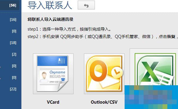 三)再打开浏览器找到电脑端QQ同步助手,找到导入联系人,如图: