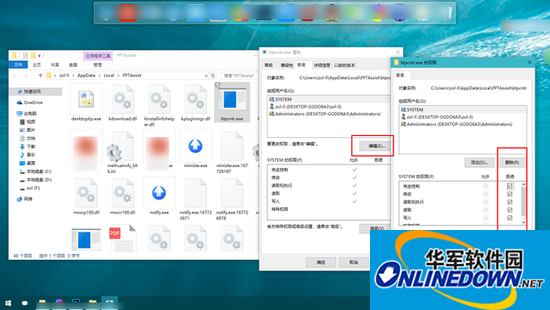 第四步加权限,右击改过名字的文件,选择属性-安全,在安全选项下选择编辑,然后在弹出的窗口的拒绝一栏全部勾选上,然后点击确定,系统会提示是否更改权限,点击确定就可以了。