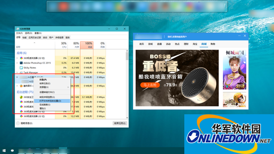 第一步定位,打开任务管理器,找到对应弹窗程序名字的进程,然后右击选择“打开文件所在的位置”,这样我们就定位到了弹窗软件。