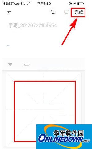 2)接着在屏幕中的汉字方格中手写编辑所要记录的内容,点击【完成】便可保存至笔记。(如下图)