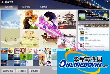6如果想要自定义聊天窗口背景,只要在“皮肤管理”里面“自定义”皮肤,上次一张图片就好里!