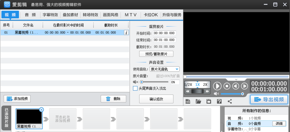 4.这时候你可以去试一下是否可以正常的导出视频了,随便添加一个视频,点击导出,观察。