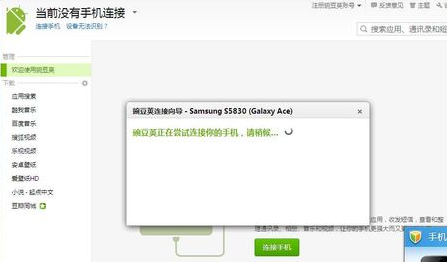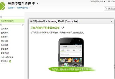 电脑会自动给手机安装豌豆荚手机客户端,这过程请不要操作手机或电脑。请确保电脑能够上网。