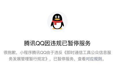 昨晚很多网友反映QQ小程序不能用了,提示违规,被腾讯官方暂停服务了。