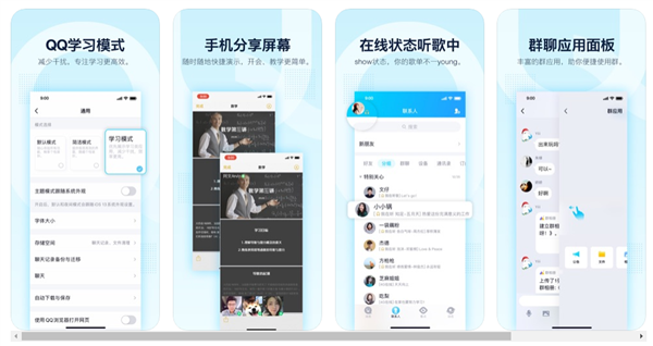 4月14日消息,今天iOS版手机QQ迎来更新,版本号为v8.3.3。新版增加了“QQ学习模式”,并支持手机分享屏幕、在线状态新增“听歌中”等内容。