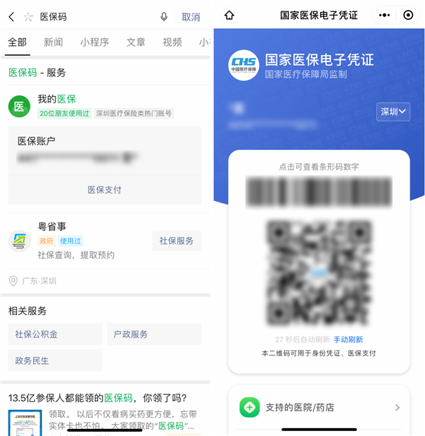 上个月,医保电子凭证在全国上线,13.5亿参保人都可以在微信上激活。未来看病、买药无需再带卡,手机刷码就可以进行医保支付了。