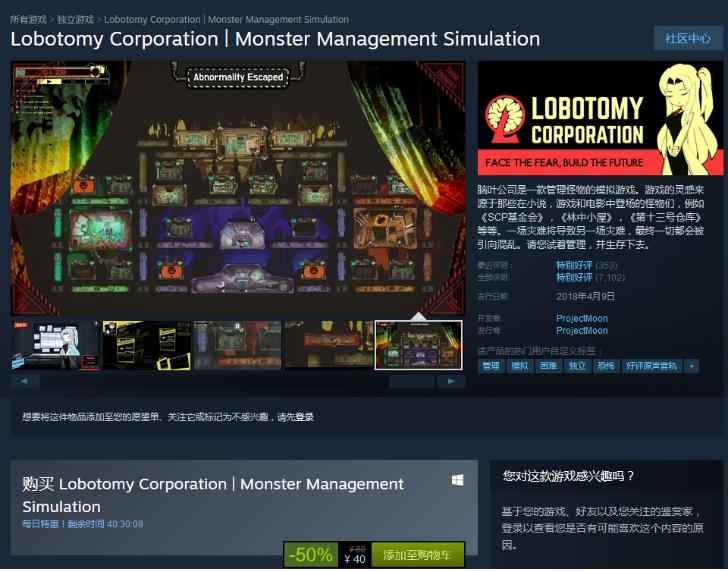 《脑叶公司》和《迷雾生存》均于Steam平台获得“特别好评”的评价。其中《脑叶公司》是一款管理怪物的Rogue-Lite模拟游戏。在游戏中,您将扮演一位怪物管理公司的主管,不断解锁新的部门,研发新的科技,并遇见形形色色的怪诞生物们。公司收容的怪物能够产出一种全新的能源,而您的职责就是在尽可能避免员工损失的前提下收集这些能源——这意味着您将在紧张与恐怖的气氛中进行游戏。