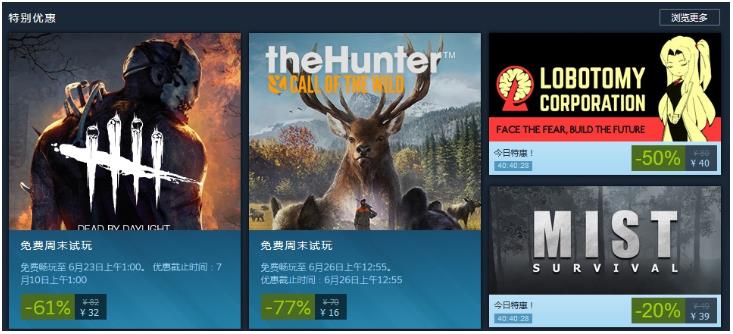 根据22日Steam平台公开的消息,《脑叶公司》和《迷雾生存》两款游戏现已加入Steam每日特惠活动。其中,《脑叶公司》折扣力度为“-50%”,现价40元,支持中文;《迷雾生存》折扣力度为“-20%”,售价39元(平史低价),不支持中文,距离优惠活动截止还有40小时左右。