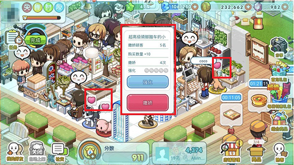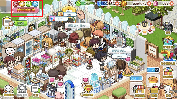 步骤一:先集齐“尖峰时段”4个快乐弹珠,然后最好等着经理进来,但是不要点击,只要不点击经理就会一直在店内巡视。