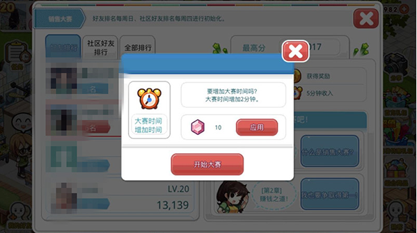 步骤四:开启销售大赛时点击加时(10个红宝石)