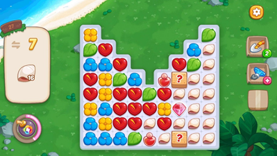 1.玩家想要通关本关卡可以在前期从左侧开始,一列一列的逐渐消除贝壳。在带?的箱子中,会随机出现钻石、炸弹等道具,可以多利用一下,会对通关有所帮助。