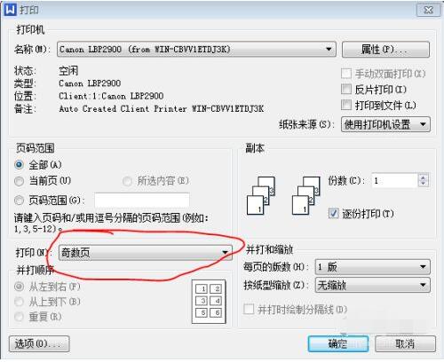 打开word文档,选择“打印”,在打印的选项板上面,选择打印“奇数页”。确定,打印。
