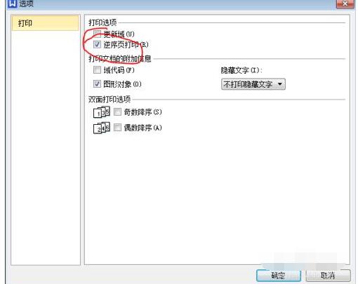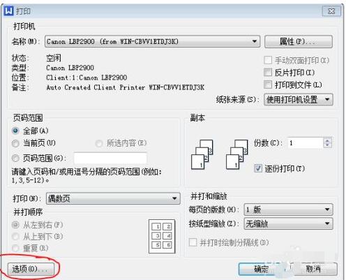 点击“选项”按钮,在打印选项里面选择“逆序打印”,确定,打印即可。