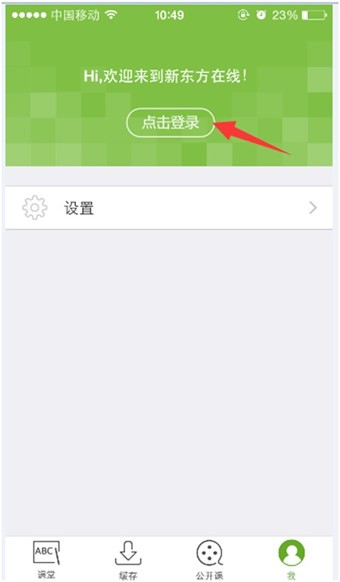 1、 安装APP后,在手机里点击新东方在线应用图标,初始界面为: