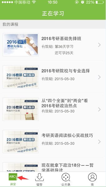 4、课堂界面。(点击我的课程,可以查看目前账户中的课程。)