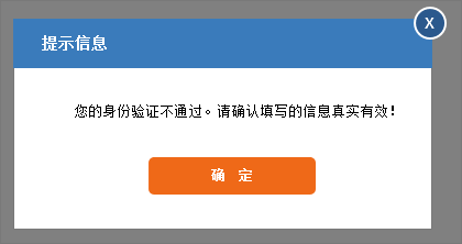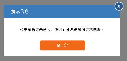 如果遇到如下提示,说明您输入的姓名和身份证号与公安部数据库不匹配。