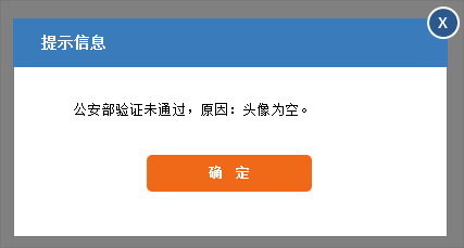 如果遇到如下提示,说明您在公安部数据库中无身份证头像,无法进行网上自助开户,请联系营业部办理。