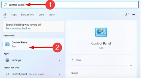 点击任务栏中的搜索框,在搜索框中搜索Control pannel然后打开控制面板。
