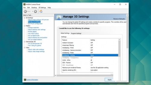 抗锯齿是一种用于提高游戏图形显示质量的模式。但是,该功能可能会导致DXGI_ERROR_DEVICE_REMOVED和其他错误。要解决此问题,请转到Nvidia控制面板并禁用它: