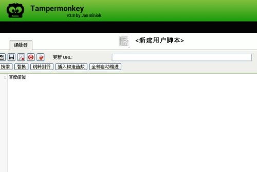 第三步:进入新建用户脚本后,就会进入到编辑区域了,我们可以随便在输入框里面输入东西,就会发现Tampermonkey可以用了(如图所示)。