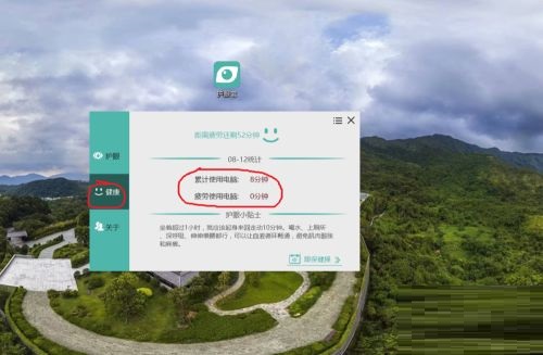 4.单击”健康“,可以查看显示的使用电脑时间、疲劳使用电脑时间(如图所示)。