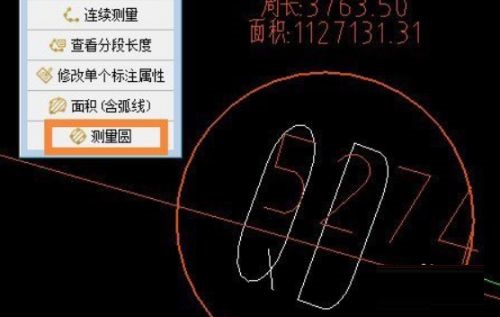 第二步:打开图纸后,点击“测量”,在下拉菜单中点击“测量圆”选项(如图所示)。