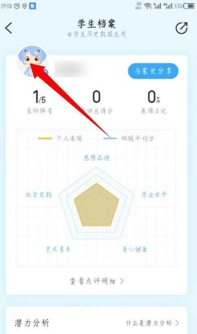 在打开的档案页面,点击左上角的学生头像。