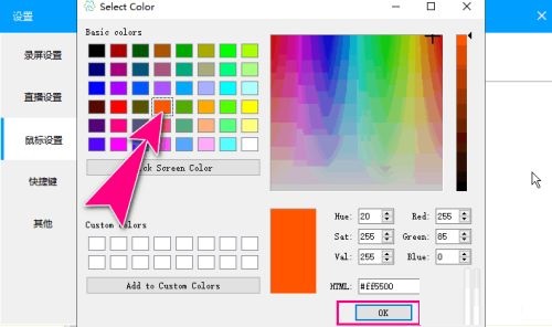 第六步:最后打开"Select Color"颜色对话框,自定义勾选中需要设置的光标颜色,再点击"OK"按钮应用生效(如图所示)。