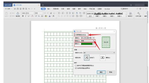 在“稿纸设置”窗口,物品们首先勾选“使用稿纸方式”。WPS稿纸分三种第一种:网格,20*20 的作文格,就是我们小时候使用的作文本样式,非常经典,如下图